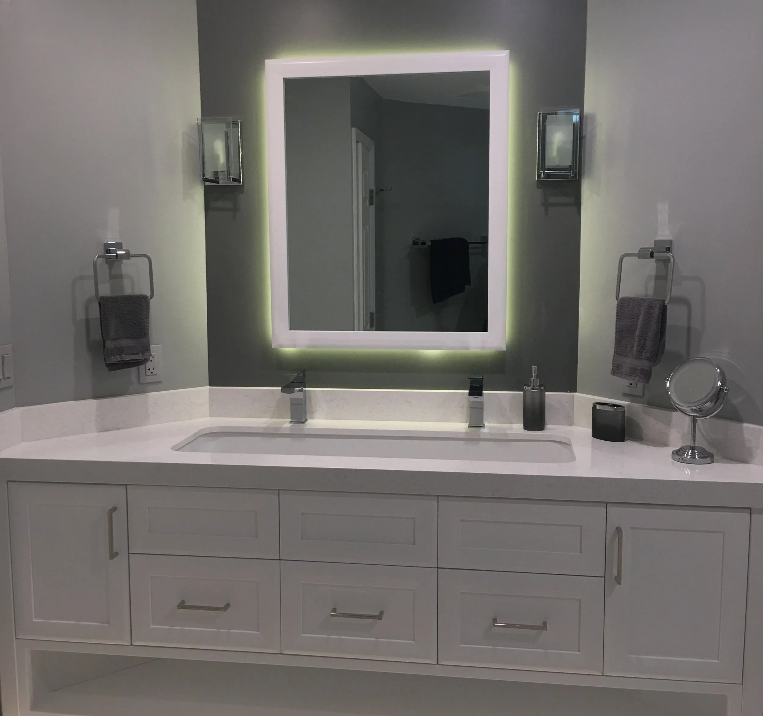 Custom-built cabinets, countertops, lighting, painting, flooring, plumbing, electrical